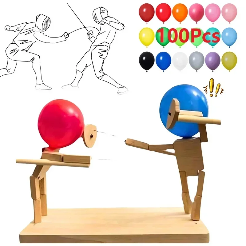 Balloon Bamboo Man Battle Handmade Wooden Fencing Puppets Wooden Bots Battle Game Two-Player Fast-Paced Balloon Battle Game