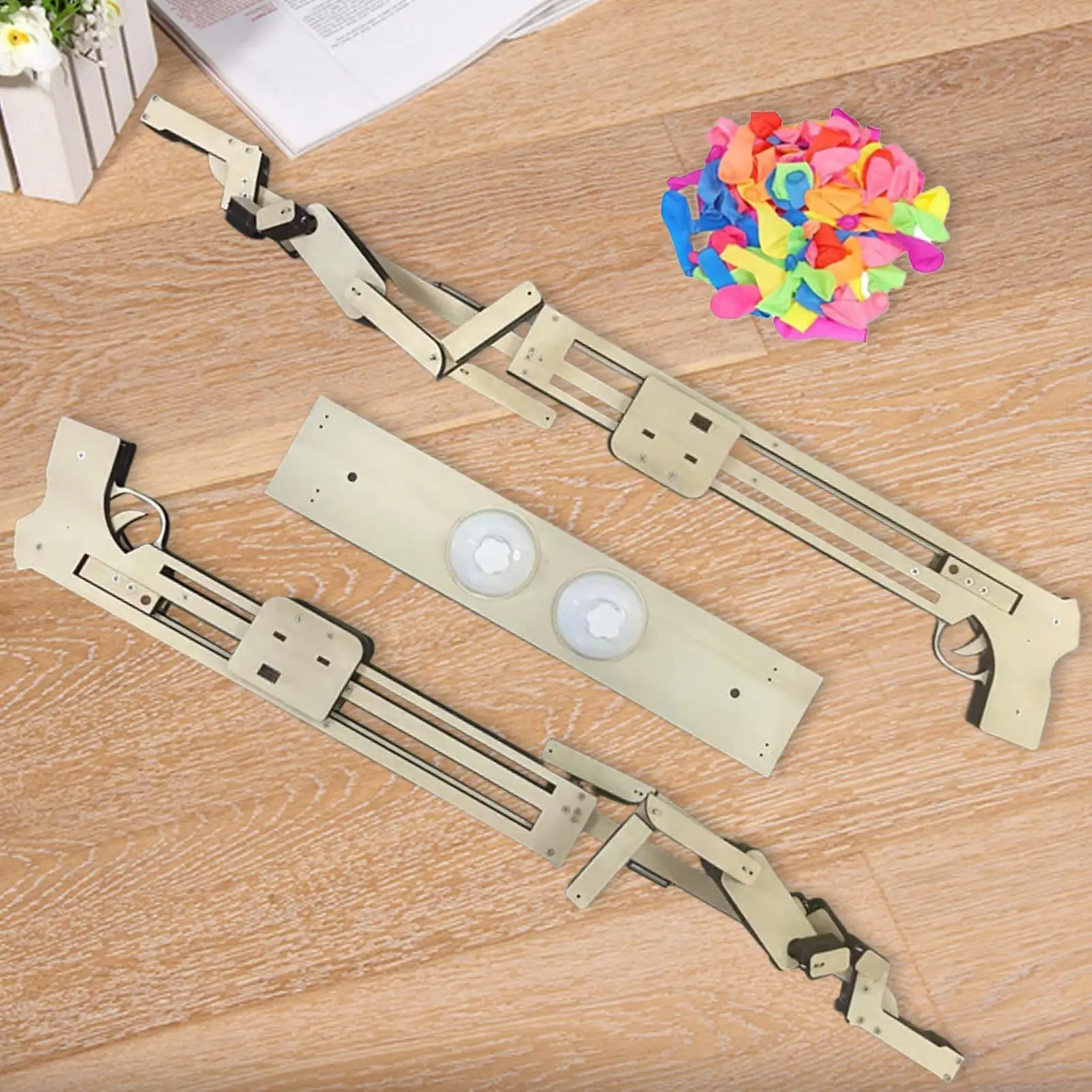 An interactive wood toy designed for adults, offering fun with 100 balloons included, perfect for 2 players to enjoy indoors in the living room or outdoors in the backyard. A wonderful addition to home entertainment that brings together men, women, and friends, creating lively moments and fostering joyful interactions.