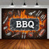 1 barbecue party banner background - polyester fabric, featuring bold barbecue letters and barbecue tool designs